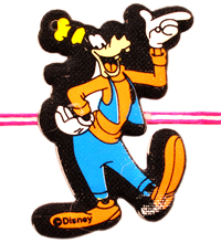 The Goofy motif is attached to a pink-and-white satin ribbon, which serves as the Rakhi thread.